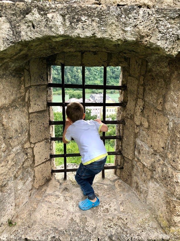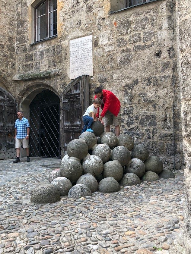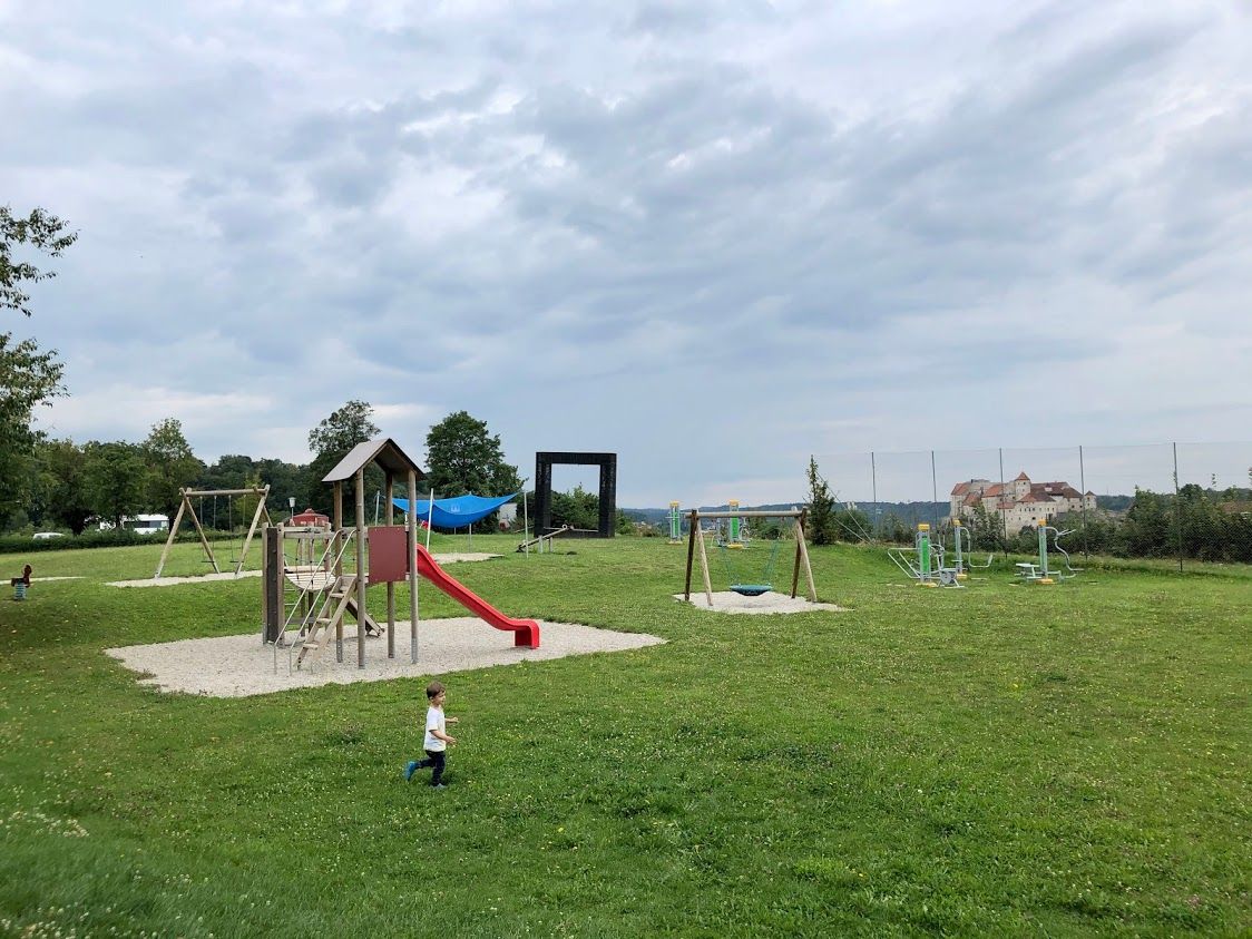 Wir fuhren weiter auf einen Spielplatz mit Blick auf die Burg. (Lage: Gemeinde Hochburg-Ach, 5122, Österreich) Ich konnte kochen während unser Sohn spielte. Und eine Picknick-Bank am Spielplatz gab es auch. Alle waren happy!