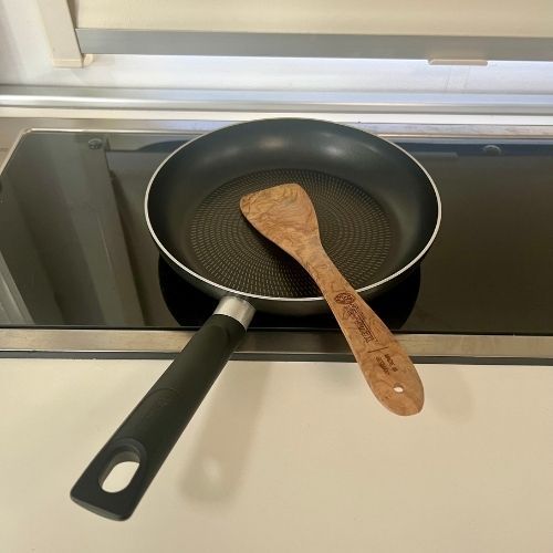 Eine Herausforderung ist die Zubereitung von Rührei oder Spiegelei. Das gelingt mir nach wie vor am besten in einer Antihaft-Pfanne, die ich dabei habe, auch wenn ich Antihaftbeschichtungen an sich kritisch gegenüber stehe.