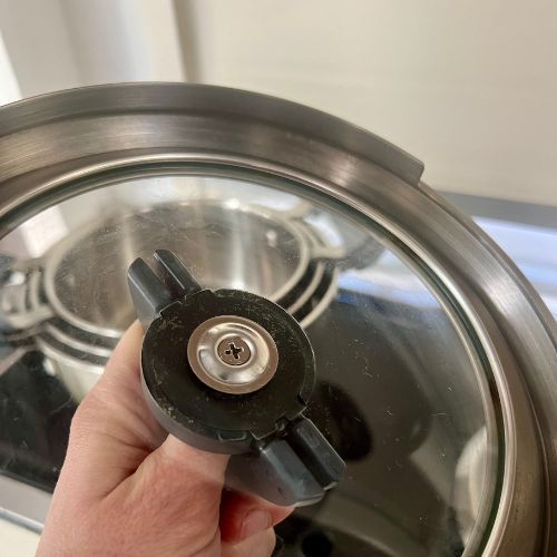 Mich nerven manchmal die Deckel. Sie lassen sich zwar gut stapeln, aber im Laufe der Zeit sammeln sich Ablagerungen unter dem angeschraubten Griff. Wenn das sehr störend wird, kann ich das zum Glück einfach durch Abschrauben und Reinigen des Griffs ändern. Die Form außen am Deckel ist etwas umständlicher zu reinigen und abzutrocknen als bei den flachen Deckeln, die meine Töpfe zu Hause haben. Aber die sind wiederum nicht stapelbar.