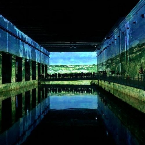 - Am nächsten Tag radelten wir zum Bassins des Lumières, einem ungewöhnlichen illuminierten Kunstmuseum in einem U-Boot-Bunker. Danach spazierten wir um das Hafenbecken, in dem Restaurant-Boot liegen und bestaunten von außen das Gebäude der Cité du Vin.