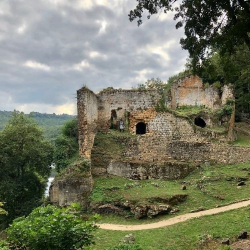 - Danach besuchten wir das Château de Commarque. Eine in einen Hang gebauten Burgruine mit darunterliegenden Höhlen.