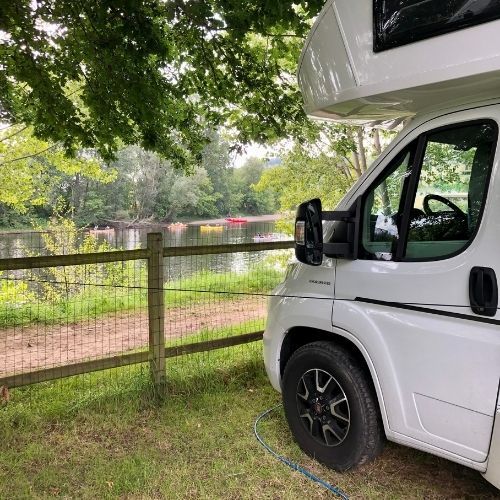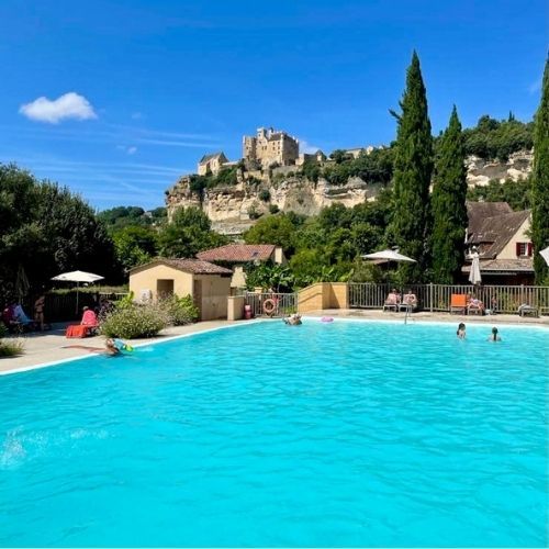 - Übernachtung auf dem Camping Car Parking beim Maison Forte de Reignac am Ufer des Vézère.