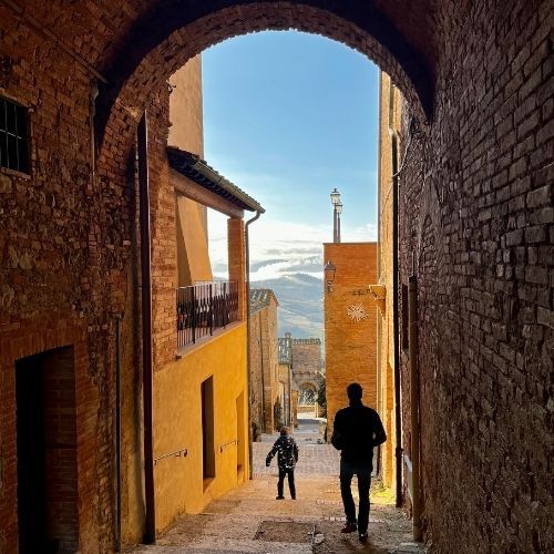 ist ein verstecktes Juwel in den Bergen der Toskana. Ein kleines mittelalterliches Bergdorf, das malerisch auf einem Hügel liegt und atemberaubende Ausblicke auf die umliegende Landschaft bietet. Hier schlenderten wir durch bezaubernde Gassen, vorbei an antiken Gebäuden und charmanten Plätzen, die von einer entspannten Lebensweise geprägt sind. Die Anwohner waren uns gegenüber freundlich und aufgeschlossen. Das Ristorante Il Nazionale hatte von früh morgens bis spät abends geöffnet, sodass wir uns dort Pizza, Espresso und Schoko-Croissants gegönnt haben. Radicondoli befindet sich in einer geothermischen Region, die für ihre natürlichen heißen Quellen bekannt ist. Von hier oben hat man einen faszinierenden Blick auf ein riesiges Naturschutzgebiet und auf geothermische Anlagen, deren Dampf morgens durch die Täler fließt.