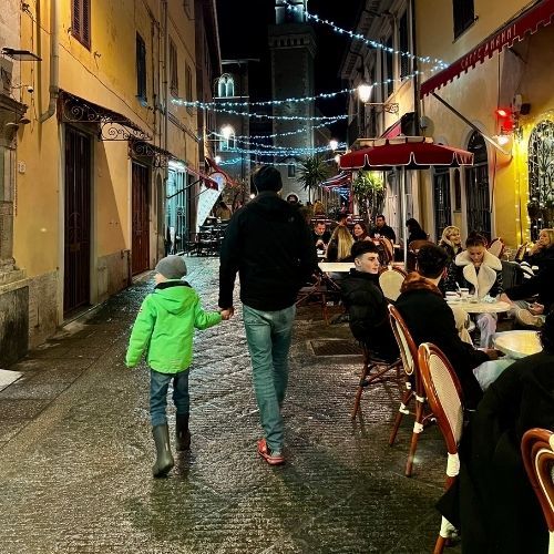 - Eine große Krippe in der Stadt ließ uns staunen. Der kalte Wind und die späten Öffnungszeiten der Restaurants waren weniger erfreulich. Doch zum Glück bot eine Bar für 7€ ein leckeres Vorspeisen-Buffet an und wir haben uns danach noch ein paar Stücke Farinata von einer Pizzeria geholt.