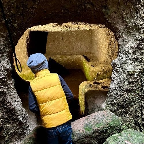 - Am Neujahrstag sind wir durch das bergige Inland zum spektakulären Parco Archeologico Città del Tufo gefahren. Hier fühlte ich mich wie Lara Croft in Tomb Raider bei der Erkundung der etruskischen Gräber und Hohlwege. Die Nekropolen bzw. Totenstädte der Etrusker stammen aus einer Zeit vor den Römern. Bis heute sind viele der Relikte gut erhalten, aber auch rätselhaft. Mehr Infos zu den geheimnisvollen Hohlwegen findest du hier https://www.toscana-vacanza.de/die-mysterioesen-hohlwege-der-etrusker-pitigliano/