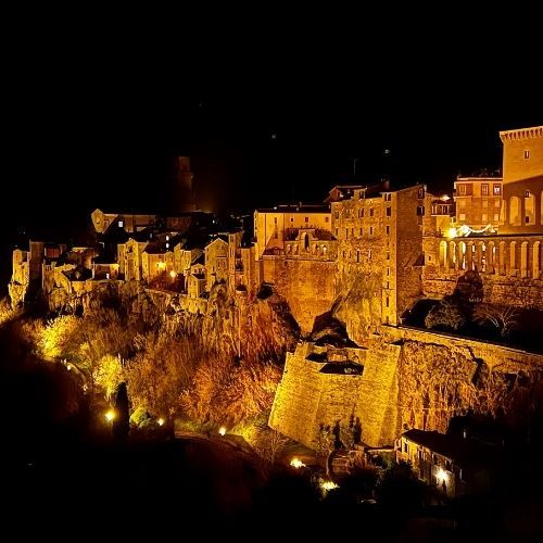 - Am späten Nachmittag fuhren wir weiter nach Pitigliano. Nach der Ver- und Entsorgung beim dortigen Wohnmobil-Parkplatz unternahmen wir einen Nachtspaziergang. Das beleuchtete Stadtpanorama von Pitigliano ist einzigartig und der Ort fühlt sich magisch an.