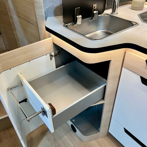 - Ist sichergestellt, dass ein funktionierendes Müllsystem vorhanden ist? Idealerweise mit zwei separaten Eimern für Plastik und Restmüll - schnell erreichbar, zuverlässig dicht und ausreichend groß. Papier und Glas können bei Platzmangel in der Heckgarage gesammelt werden.