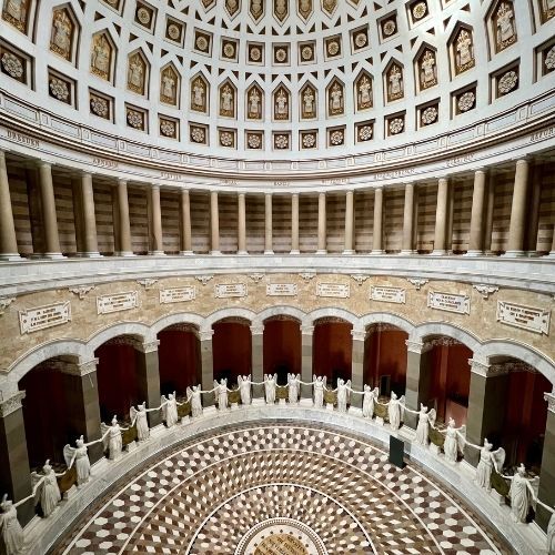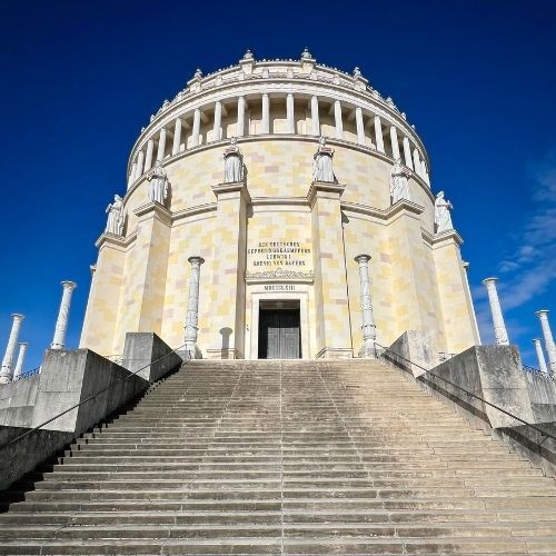 - Nach einem schnellen Frühstück im Wohnmobil spazierten wir hinauf zur Befreiungshalle. Da wir uns allein in der Halle aufhielten, war die Akustik und das Ambiente der Halle einzigartig.