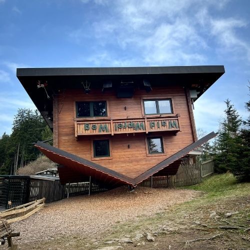 - Morgens betraten wir den großen Freizeitpark mit dem Waldwipfelweg. Als Erstes steuerten wir das Haus am Kopf und danach das Kugelbahnhaus an, um dort ungestört zu experimentieren. Weitere Highlights war der Waldwipfelweg und der Spielplatz.